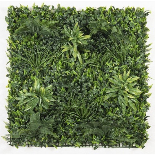 Συνθετικό διακοσμητικό πάνελ με πυκνή φυλλωσιά, σε πλακίδιο 1m x 1m. Έχει τρισδιάστατη όψη και δίνει μια αίσθηση ζωντάνιας και φυσικότητας στον χώρο σας. Διακοσμήστε τον εξωτερικό ή εσωτερικό χώρο σας με τα πάνελ φυλλωσιάς και δημιουργήστε έναν μοναδικό κάθετο κήπο.