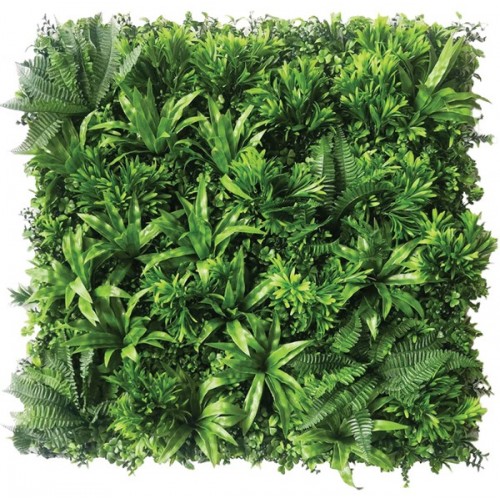 Συνθετικό διακοσμητικό πάνελ με πυκνή φυλλωσιά, σε πλακίδιο 1m x 1m. Έχει τρισδιάστατη όψη και δίνει μια αίσθηση ζωντάνιας και φυσικότητας στον χώρο σας. Διακοσμήστε τον εξωτερικό ή εσωτερικό χώρο σας με τα πάνελ φυλλωσιάς και δημιουργήστε έναν μοναδικό κάθετο κήπο.