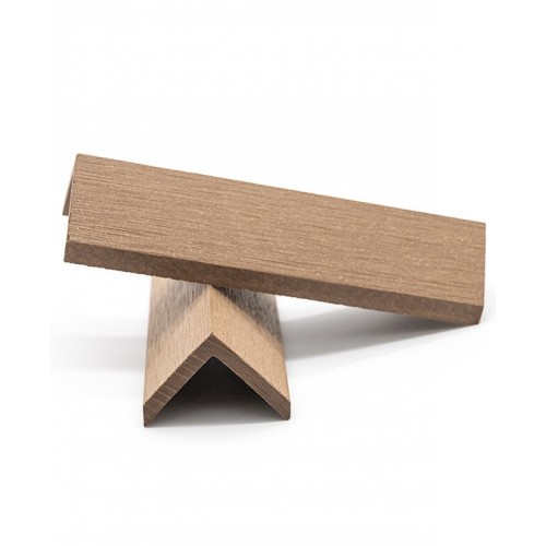 Γωνία από υλικό WPC για να τελειώσουμε με τον καλύτερο τρόπο το δάπεδό μας. Τοποθετείται στο τελείωμα και συνήθως βιδώνεται ή τοποθετείται με κόλλα. Τα προφίλ σχήματος «Γ» μπορούν επίσης να χρησιμοποιηθούν ως προεξοχή σκαλοπατιού (με χρωματική αντίθεση), προσφέροντας ένα ορατό σημάδι στα άκρα των σκαλοπατιών. Έχουν φυσική όψη και ταιριάζουν απόλυτα με το πάτωμα Deck WPC.