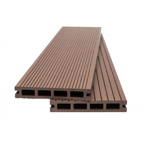 Συνθετικό δάπεδο Deck WPC εξωτερικού χώρου που αποτελείται από 55% ξύλο και 35% HDPE και 10% ρητίνες, UV σταθεροποιητές κλπ. Είναι διπλής όψης με στενό χτένι στη μία όψη και φαρδύ στην άλλη. Ιδανική επιλογή για πάτωμα πισίνας, βεράντας, εξωτερικούς χώρους καταστημάτων, κήπους, μαρίνες κλπ.